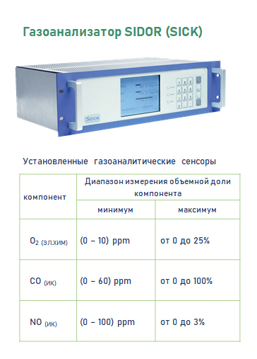 - собран на основе газоанализатора SIDOR немецкой компании SICK,